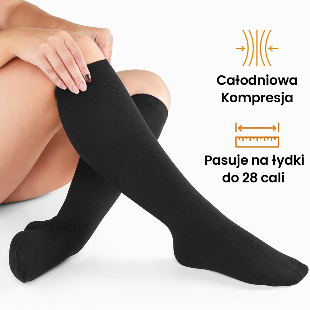 Załóż je rano i poczuj ulgę — są dopasowane, ale nie uciskają, zmniejszając ból, obrzęk i dodając energii na cały dzień.