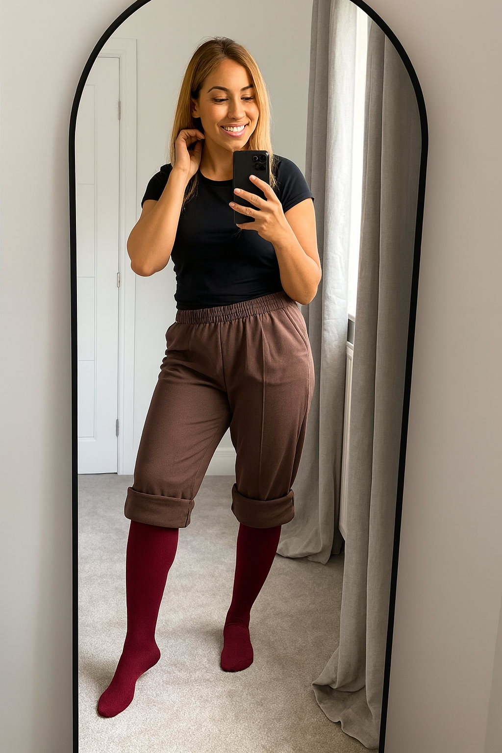 Nasze skarpety delikatnie otulają łydki i stymulują prawidłowe krążenie, nie uciskając zbyt mocno. Pomagają zapobiegać potencjalnym problemom zdrowotnym, takim jak zakrzepy krwi, zapewniając jednocześnie całodzienny komfort.