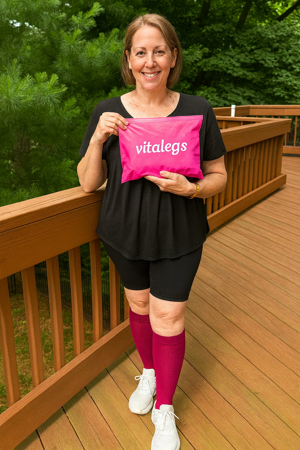 VitaLegs® wykorzystują stopniowaną kompresję o wartości 15–20 mmHg, zapewniając idealną równowagę między wsparciem a ulgą bez uczucia zbytniego ucisku.
